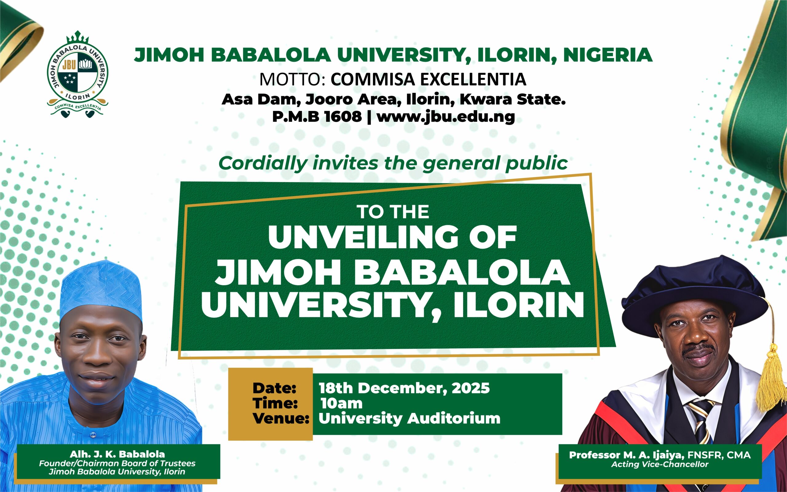 JBU has officially received its operational license from the NUC, marking its formal recognition as a higher education institution...